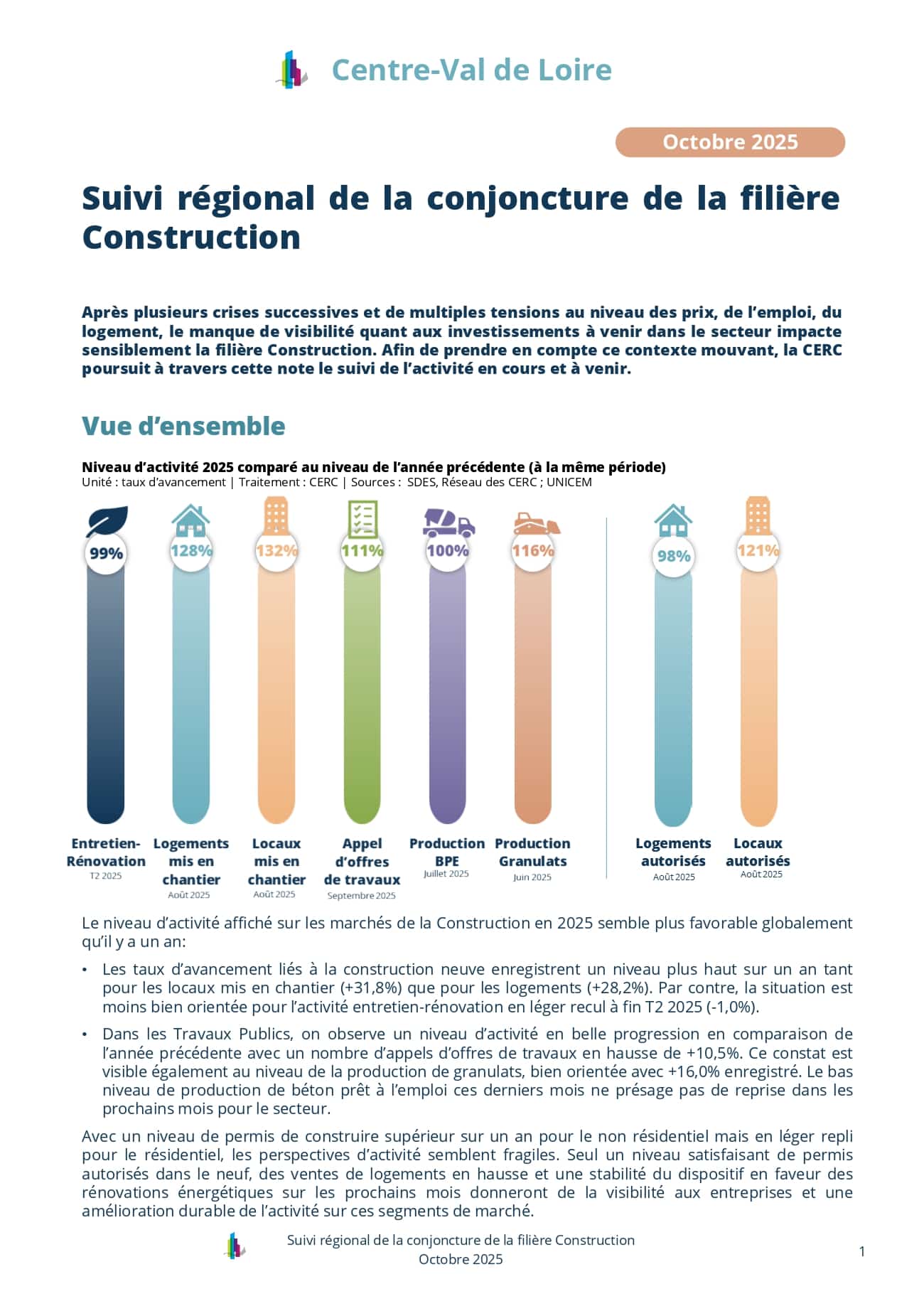 Suivi régional de la conjoncture de la filière construction – Octobre 2025