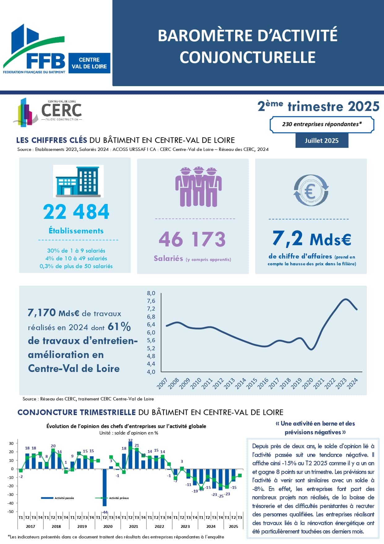Cette enquête trimestrielle est menée en partenariat avec la Fédération régionale du Bâtiment en région Centre-Val de Loire et ses six Fédérations départementales.