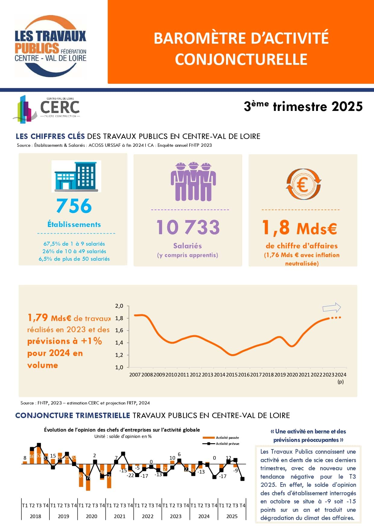 Cette enquête trimestrielle est menée en partenariat avec la Fédération régionale des Travaux Publics en région Centre-Val de Loire.